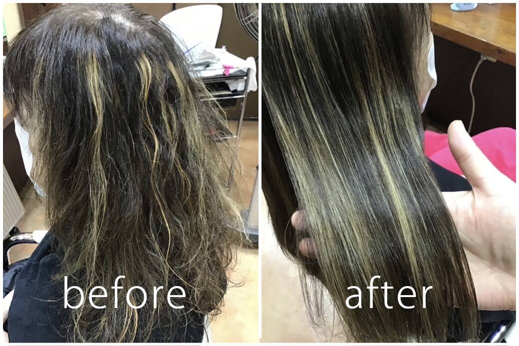 また、髪をベストな状態にするための残留薬剤除去など、手間と時間を惜しみなく使い施術を進めていきます。